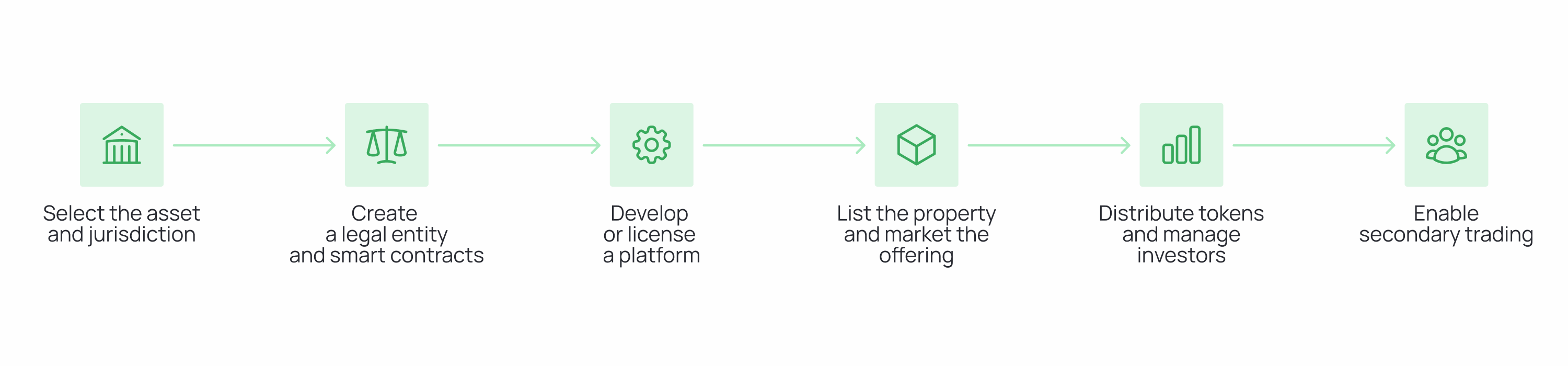 - Technology platform. Use our white‑label software to list properties, manage tokens, and run secondary trading without starting from scratch.