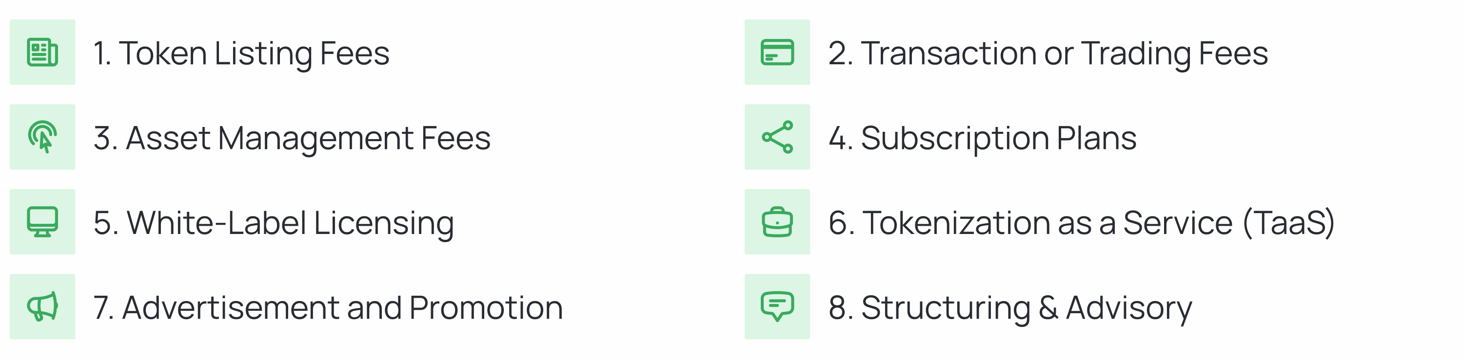 A 2025 guide on real estate tokenization development describes several monetization models for these platforms: